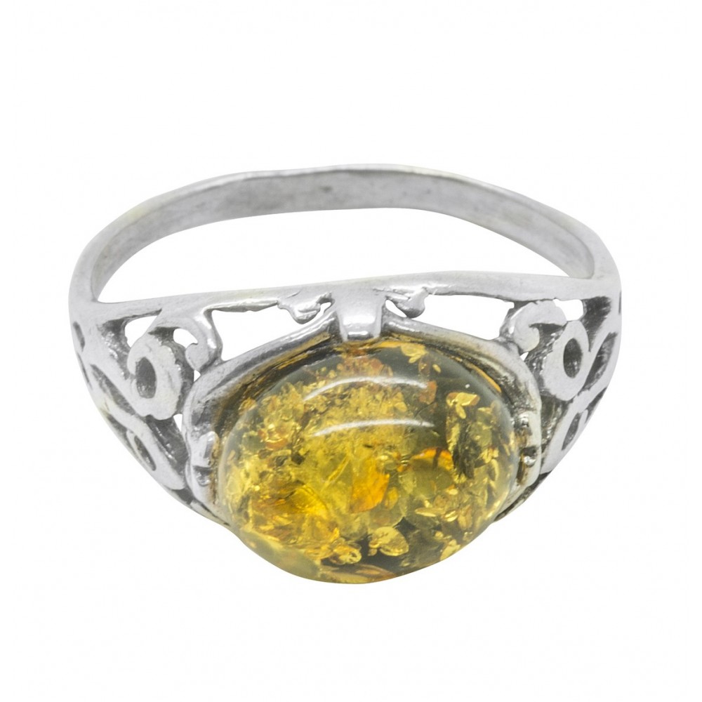 Bague en ambre vert véritable et Argent 925/1000 dans un style d'époque.