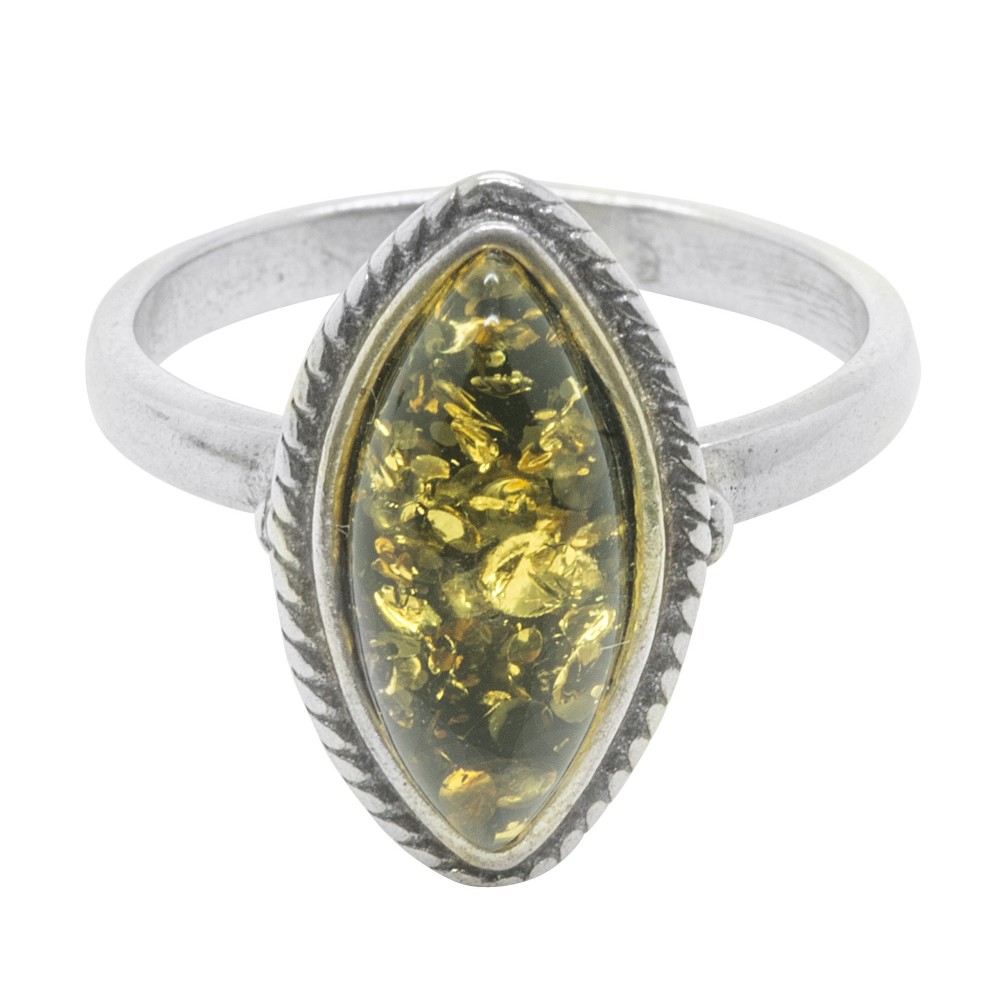 Bague ambre naturel couleur vert le tout accompagné d'Argent 925/1000.