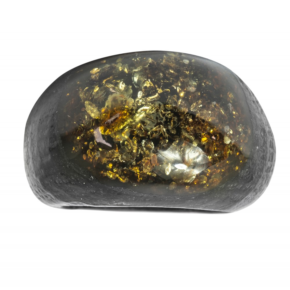 Bague en chêne noir avec une pierre d'ambre naturel de couleur verte, le mélange parfait de 2 matières naturel.