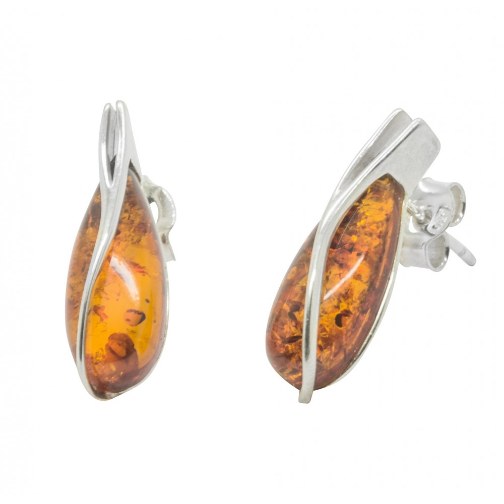 Boucle d'oreille en Argent 925/1000 et perle d'Ambre naturel de couleur cognac.