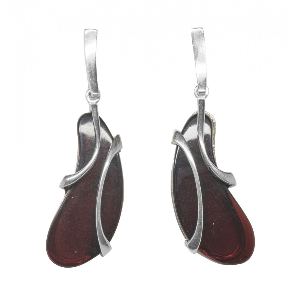 Boucle d'oreille femme en argent 925/1000 et ambre naturel couleur cerise. La pierre d'ambre est entouré de son armature en argent pour un résultat moderne et unique.