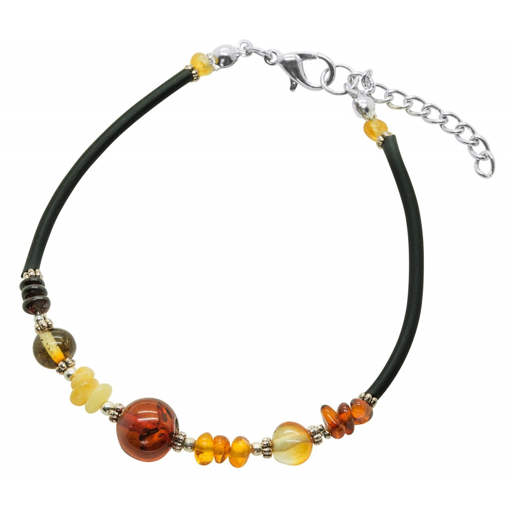 Bracelet en ambre naturel avec perle d'ambre miel, blanc, vert, cognac et citron.