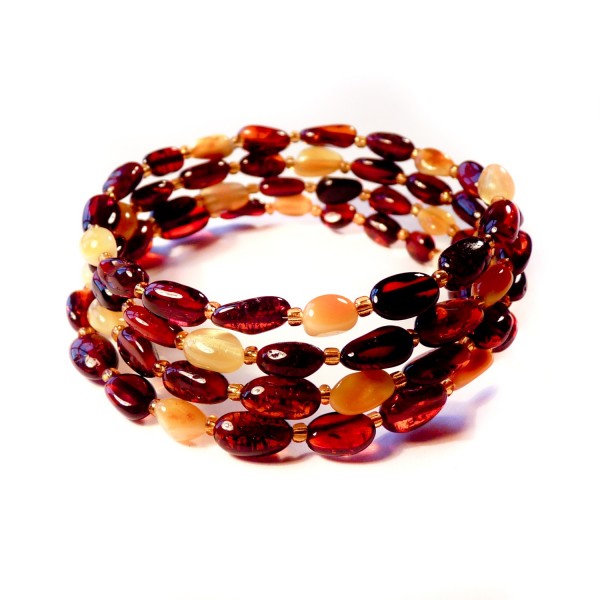 Bracelet en ambre naturel de 2 couleurs, cognac et blanc, ce bracelet est fabriqué sur le modèle accordéon sur 4 tours.