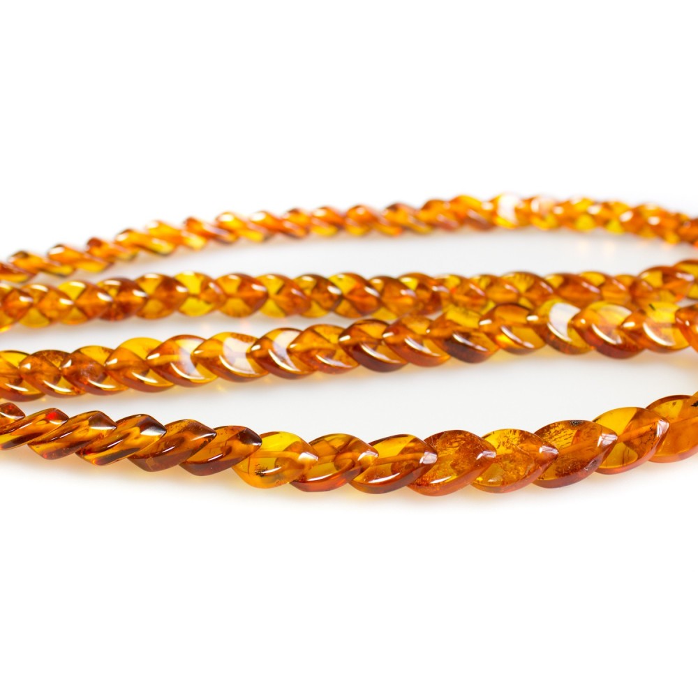 Collier d'ambre fabriqué à partir de perle d'ambre taillé en forme de losange de couleur miel. Taille Adulte.
