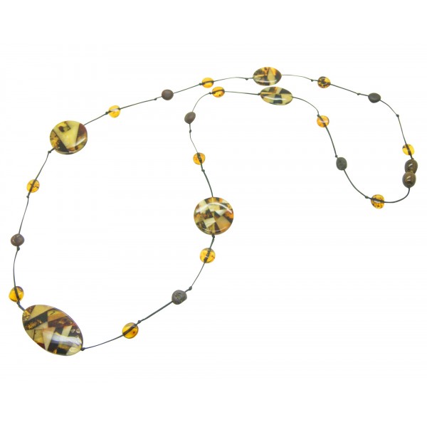 Moderne collier d'ambre naturel de fabrication artisanale, ce collier est doté de pierres d'ambre mosaïque rondes et ovale. Une pièce unique qui en fera un cadeau magnifique.