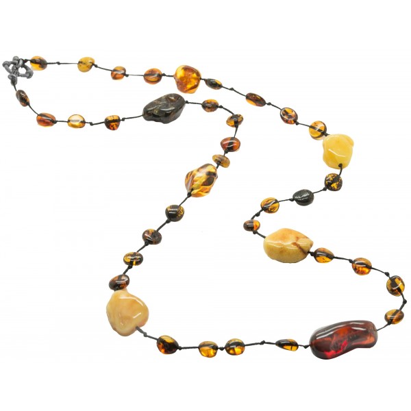 Collier d'ambre pour adultes avec des pierres d'ambre multicolores, ce modèle original vous donnera un style exotique.