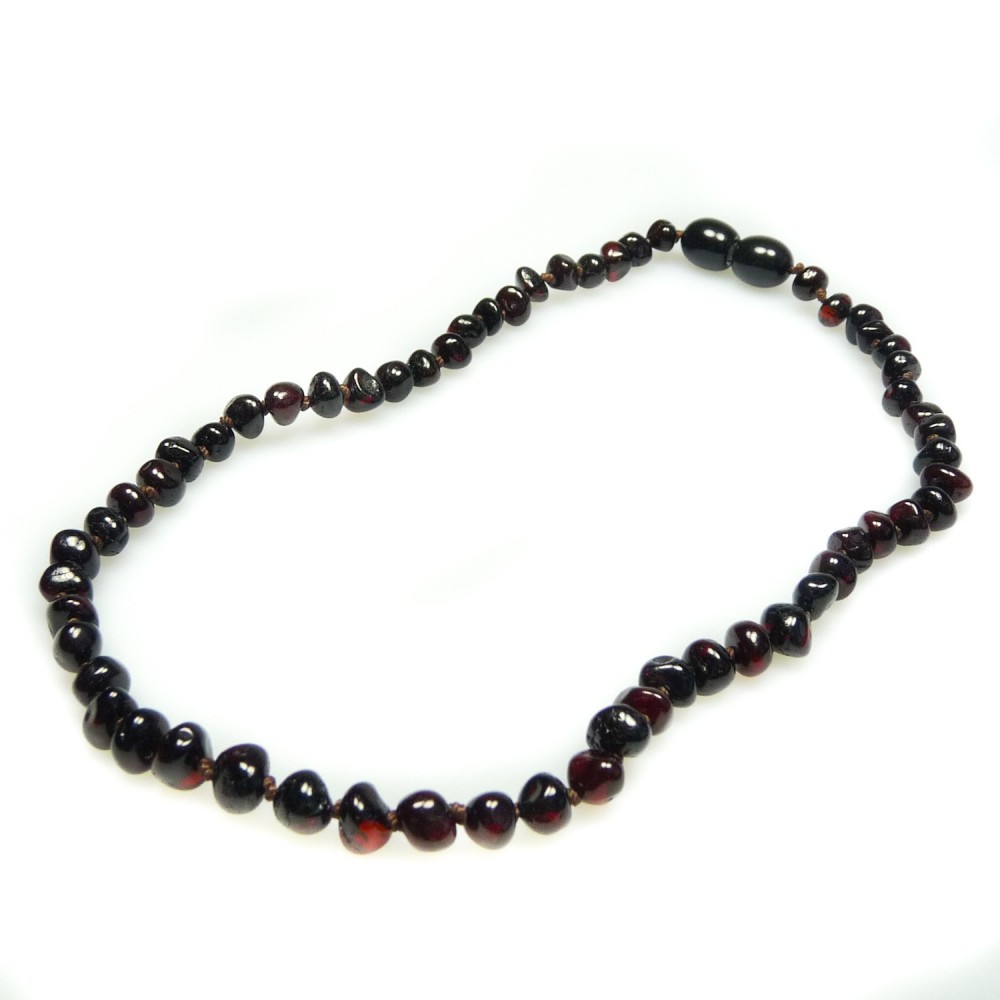 Le collier en ambre pour bébé est un remède traditionnel utilisé par nos grand-mères et parent pour apaiser les douleurs liées à la pousse des dents chez les bébés et les jeunes enfants. L'ambre reste un moyen naturel et sain de prendre soin de votre bébé et de lui éviter des douleurs inutiles. Pour profiter des bienfaits du collier en ambre il suffit de le placer autour du cou de votre bébé, il n'est pas nécessaire de le mâchouiller, le simple contact de l'ambre sur la peau lui permet de libérer des substances apaisante et relaxante. Nos colliers en ambre sont fabriqués à la main de façon artisanale et un contrôle qualité est effectué après chaque réalisation. En cas de casse du collier, chaque perle d'ambre et séparé par un nœud afin d'éviter toute ingestion par l'enfant. Le collier est également équipé d'une fermeture de type vis afin d'éviter tout décrochage intempestif. Il est néanmoins fortement recommandé de ne laisser le collier à votre bébé que sous la surveillance constante d'un adulte. La taille de chaque collier varie entre 30 et 33 cm en fonction du nombre de nœuds et de pierre qui compose chaque collier, suivant l'enfant cela correspond à une tranche d'âge comprise entre 6 mois et 5 ans.
