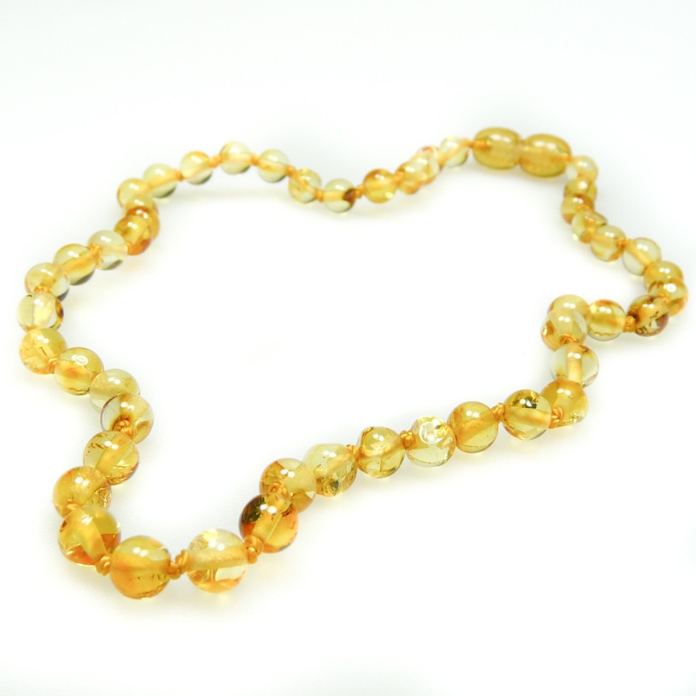 Collier d'ambre pour bébé de qualité extra fabriqué à partir d'ambre naturel couleur citron. Chaque perle d'ambre et séparé par un noeud pour le sécuriser.
