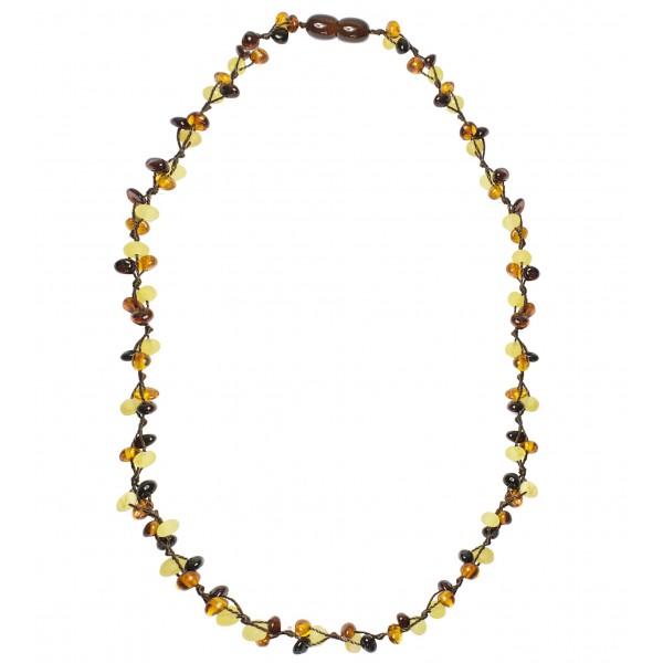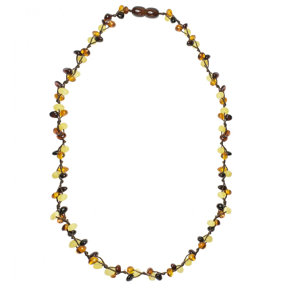 Collier avec duos de perles d'ambre naturel sur fil de couleur marron. Un collier léger et élégant qui fera merveille autour de votre cou.