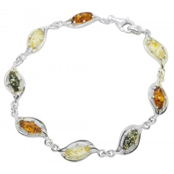 Armband natürlichen Bernstein Brandy, Zitrone, Grün und Silber 925/1000.