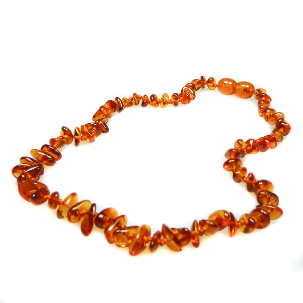 Baby-Bernsteinkette aus natürlichen Bernstein Cognac Farbbrillianz gemacht. Jede Bernsteinperle und durch einen Knoten getrennt, um es zu sichern.