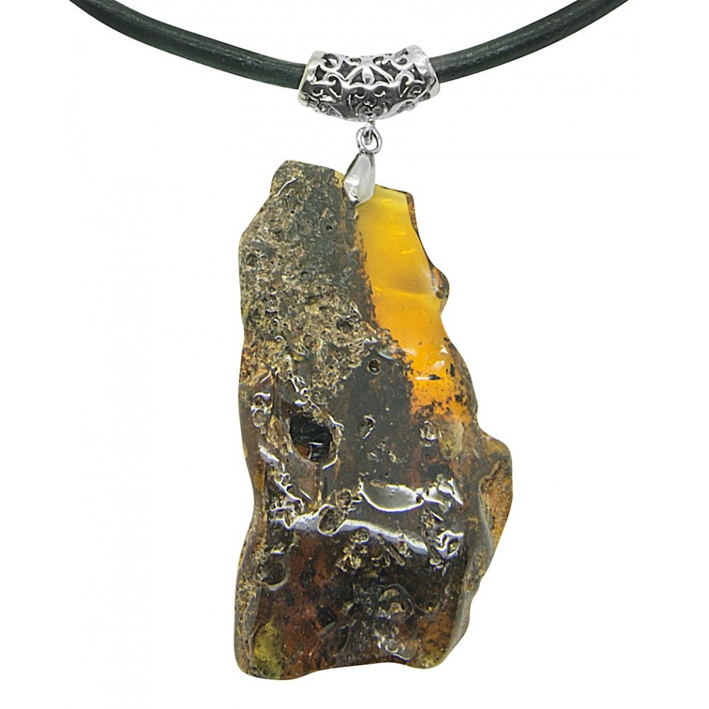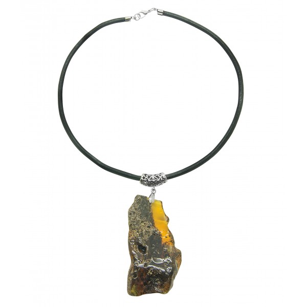 Sehr schöne Halskette mit einem großen Stein halb-polierten rohen Bernstein Anhänger. Diese Kette ist einzigartig und wir haben nicht zwei so.