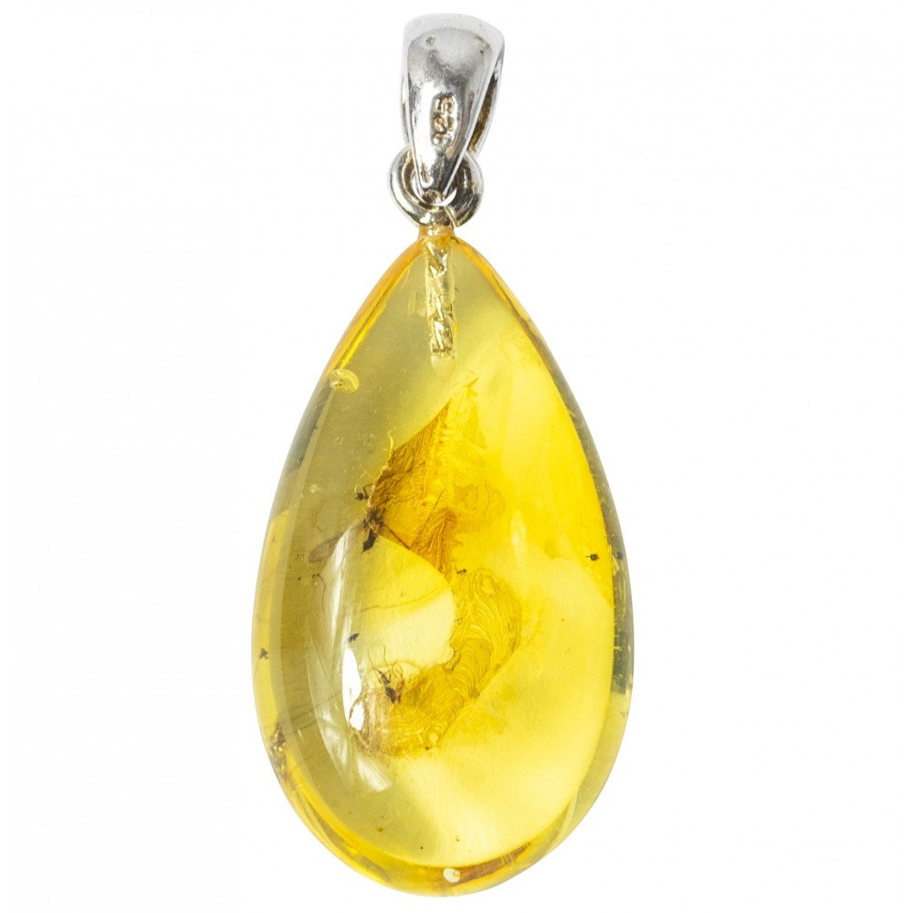 Fügen Sie einige Geschichten um den Hals mit diesem Anhänger echten Baltischen Bernstein farbigen Honig mit 2 Insekteneinschlüsse. Haken in Silber. P>