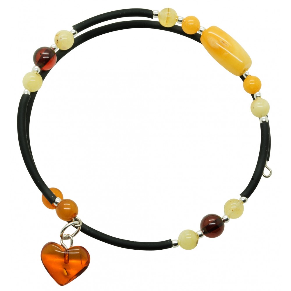 Armband natürliche Bernstein Multicolor-Akkordeon-Stil auf zwei Touren mit verschiedenen Steinen aus Bernstein und kleinen Herzen Bernstein.