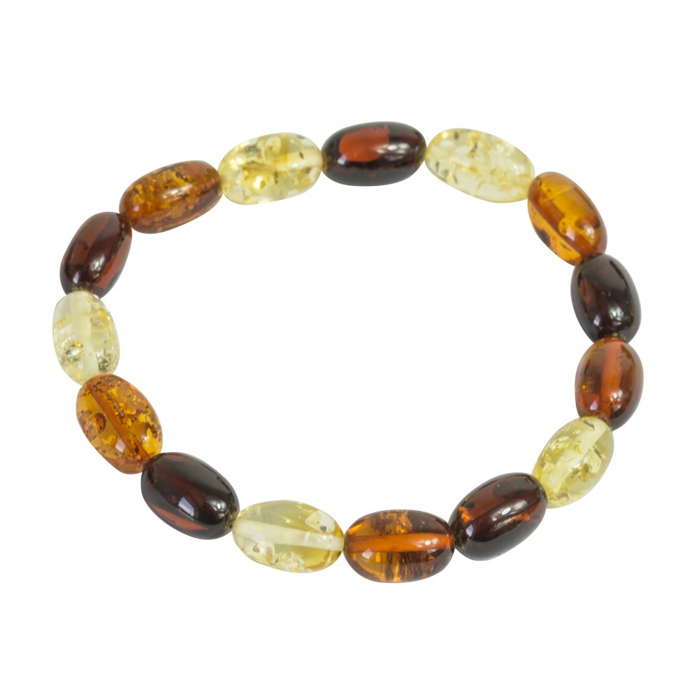 Armband echte Bernstein Mehrfarbenerwachsenengröße mit ovalen Perlen hergestellt.