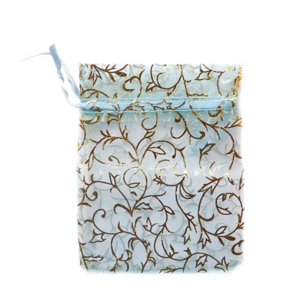 Organza Beutel blauen Himmel mit goldener Dekoration Pflanze. Größe 9,5 cm x 12 cm