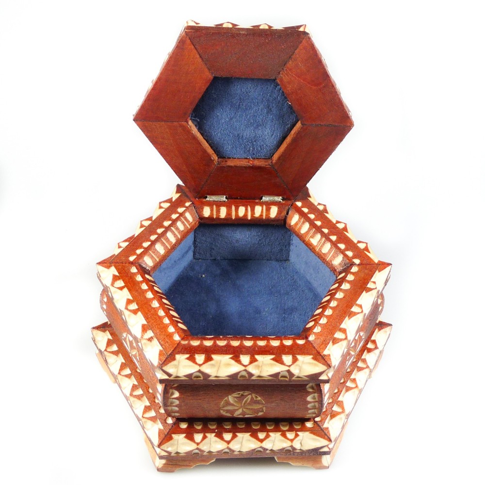 hölzerne Schmuckschatulle geschnitzt zweifarbige, handgefertigt.
