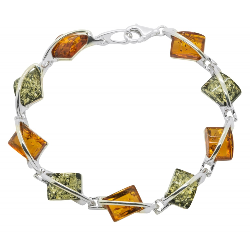 Schöne Armband aus echtem bunten Bernstein zusammen mit 925/1000 Silber. Ein High-End schnallt den schönsten Effekt.