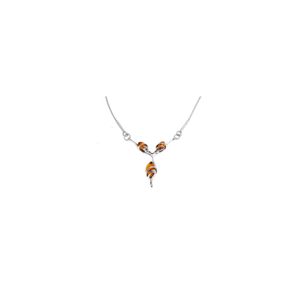 925/1000 diseño moderno colgante de plata acompañado de un trío de cuentas de ámbar elegantemente envuelto en su pantalla de plata.
