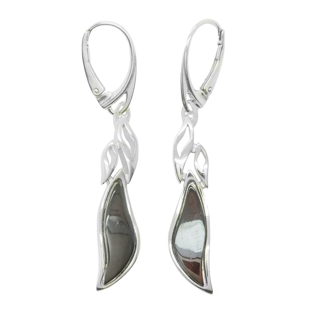 925/1000 pendiente de plata y con forma de onda de color cereza ámbar natural. Pendientes en vez moderno y elegante.