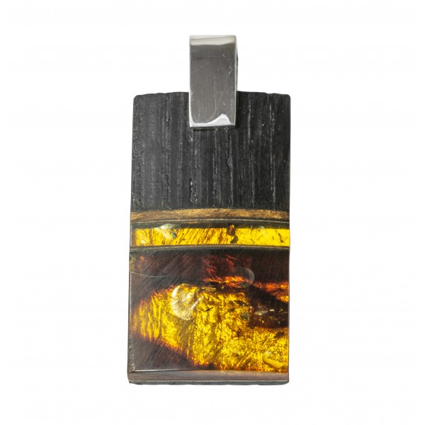 gran colgante de madera preciosa con plata y blanco genuino ámbar del Báltico y miel.