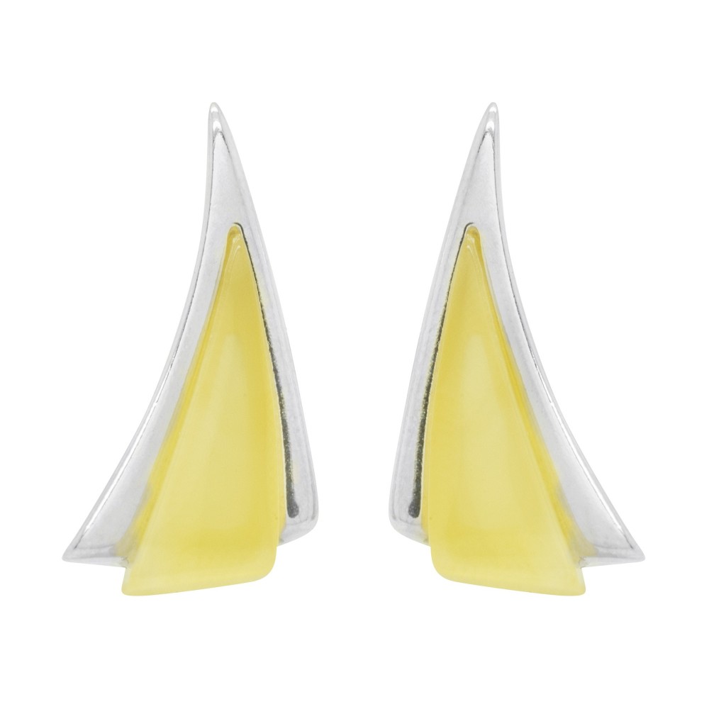 Pendiente de plata 925/1000 triángulo junto con ámbar blanco natural.