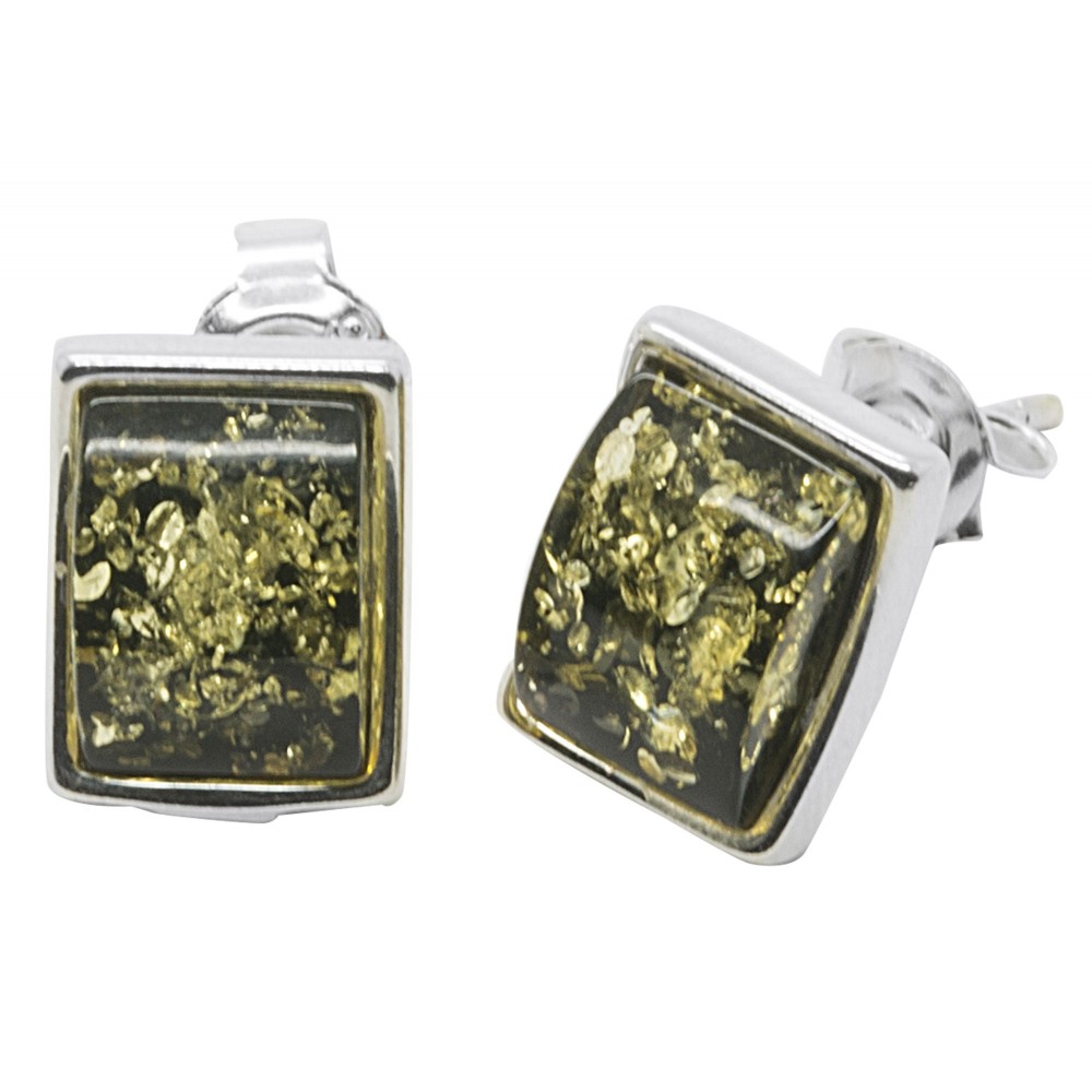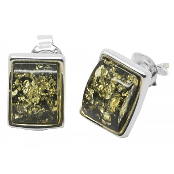Pendientes ámbar verde y plata 925/1000 rectangular.
