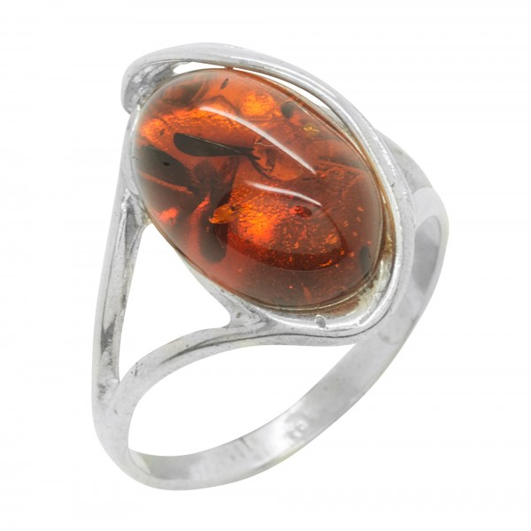 Anillo de plata y ámbar 925/1000 color natural cabujón coñac.