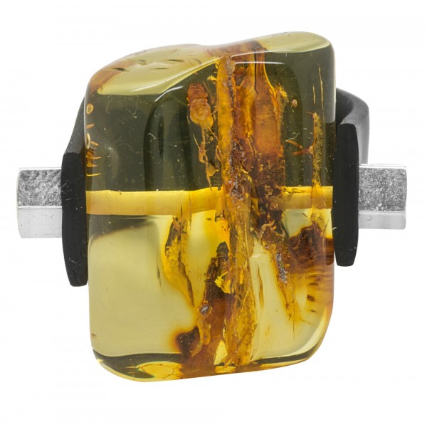 Un anillo con efectos muy naturales de forma irregular y el color de la miel, este anillo no pasará desapercibida. Está montado sobre una correa de silicona que se puede ajustar en el dedo