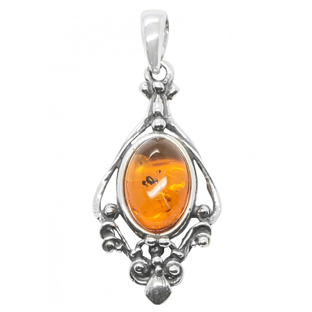 Colgante de ámbar coñac natural hecho a base 925/1000 dinero.