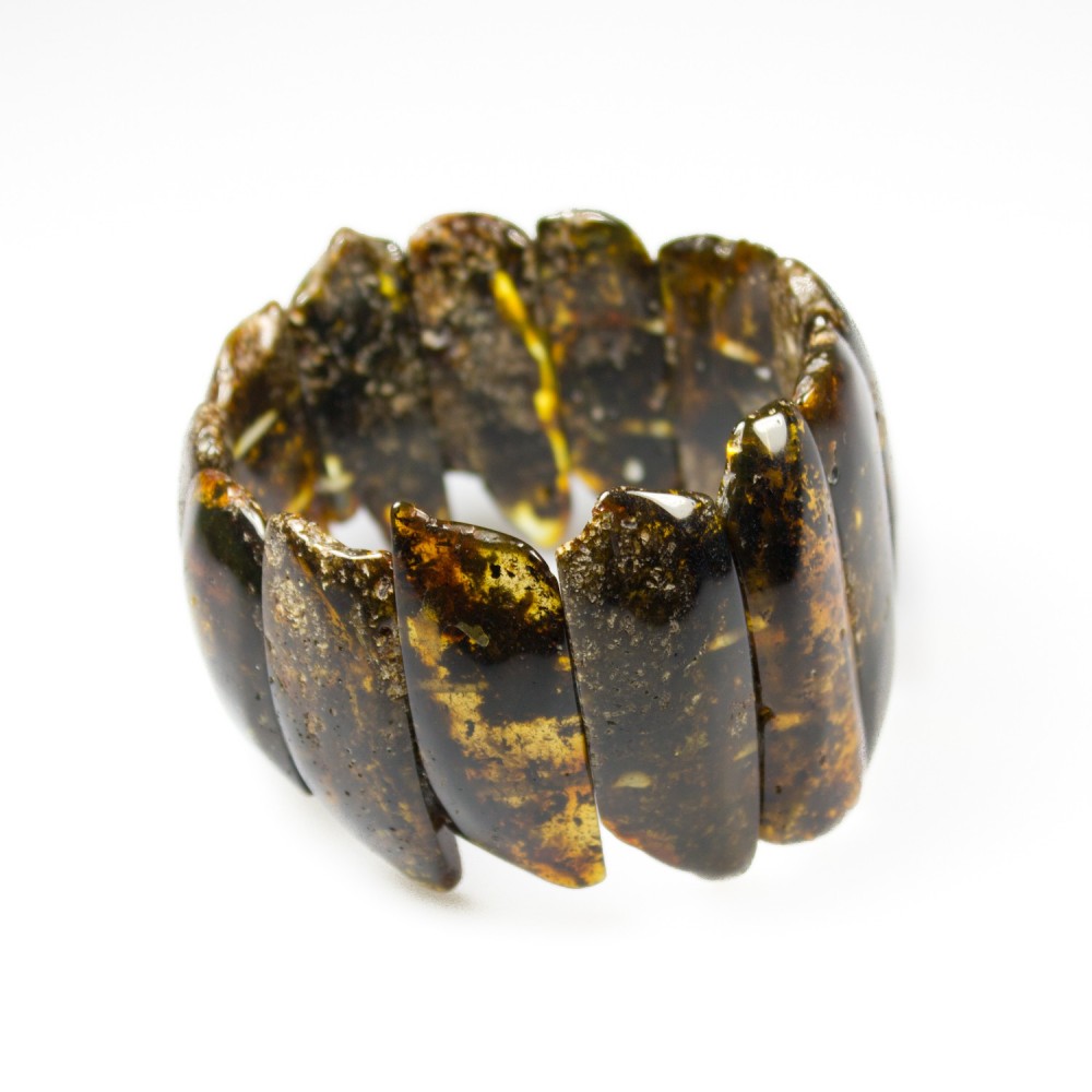Pulsera ámbar en bruto de color verde oscuro naturales (muy raro). Tan hermoso como un brazalete misterioso.