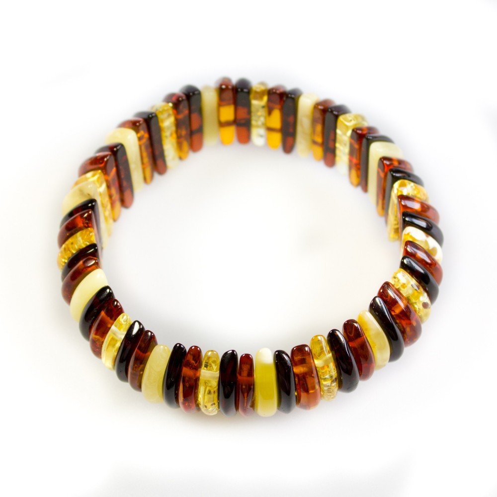 Multicolored adult size amber bracelet made with amber stones in the shape of a half-moon on elastic. Approximate weight13-16 grams./ P>Approximate diameter : 5.5 cmcircumference : 17 cmSize of the stones: 1 - 1.5 cm