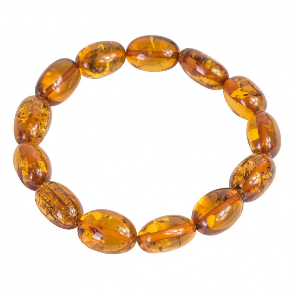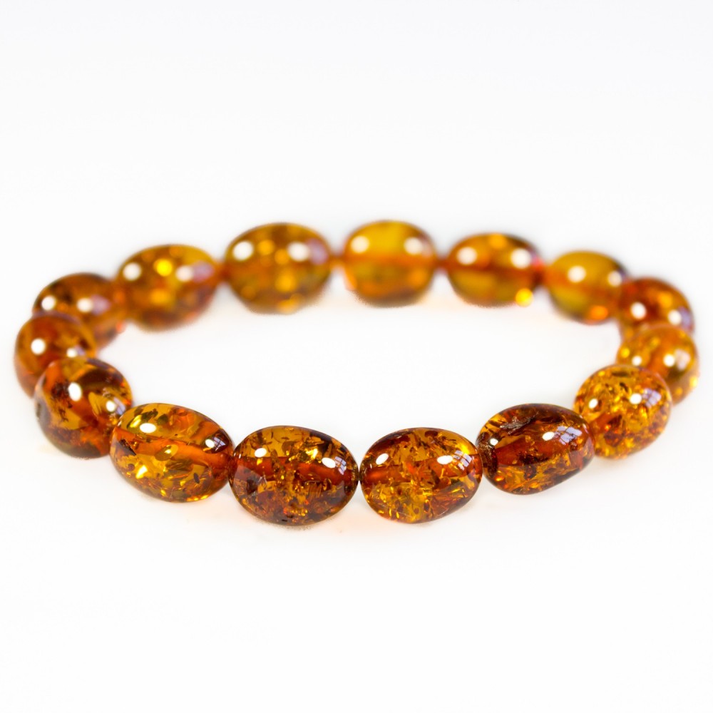 Adult size honey amber bracelet made with oval beads./ P>
