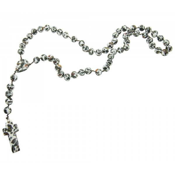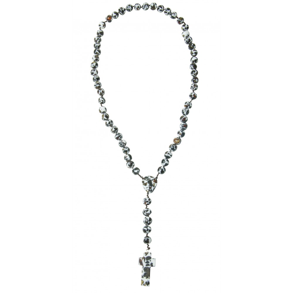 Modern rosary with natural amber pearl of mosaic type. The cross is also in amber mosaic.