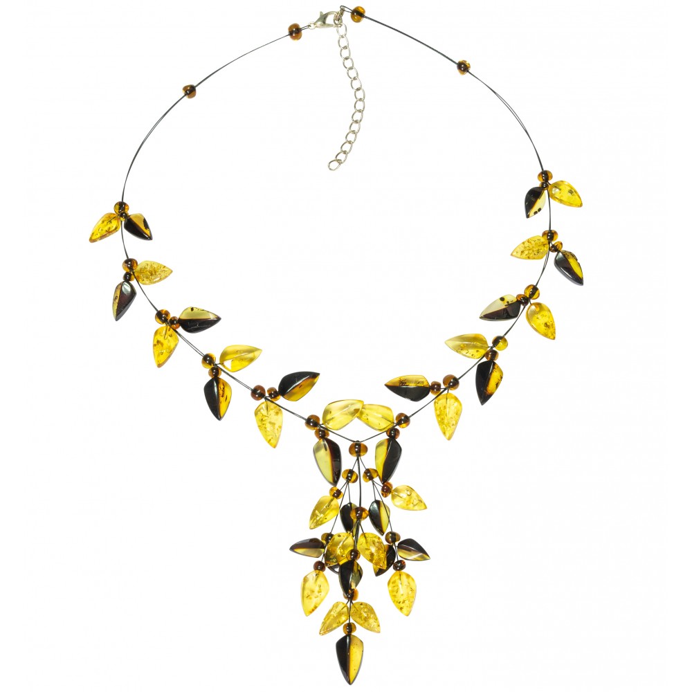 Adult amber necklace composed of amber pearl cut multicolored (green, cognac, lemon, cherry and royal) on steel cable./ Span>