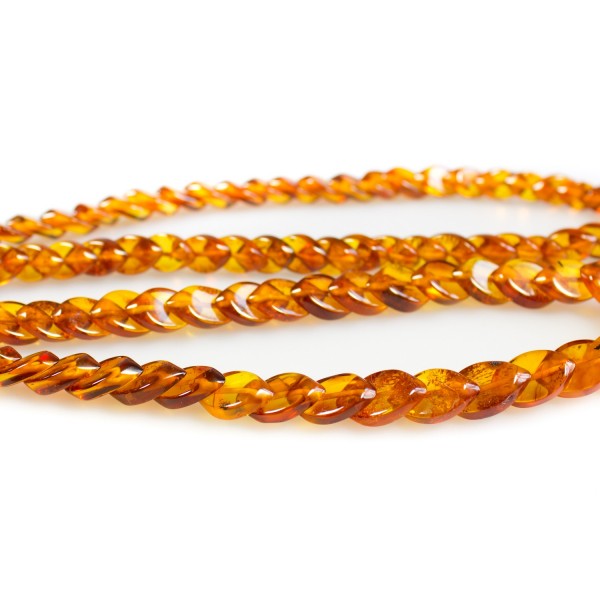 Amber necklace made from honey-colored rhombus cut amber pearl. Adult size.
