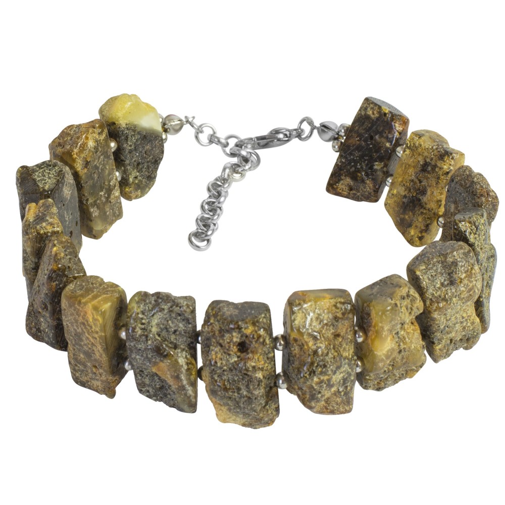 Bracelet woman in natural raw amber, each amber stone is separated by two steel beads. An ideal bracelet to enjoy the benefits of amber.