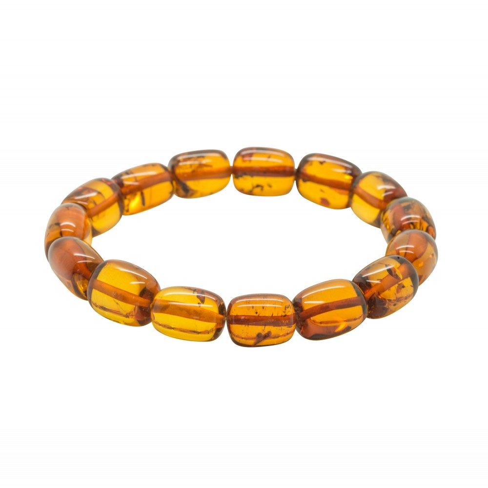 Adult size women's bracelet made with cognac amber beads cylindrical shape and mounted on elastic.