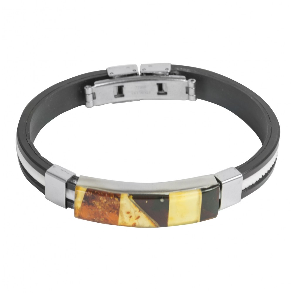 Natural amber bracelet associated in the form of a mosaic on silicone bracelet. This uni-sex bracelet will suit both men and women.