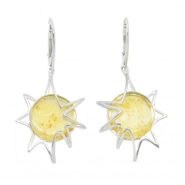 Sun-shaped earring made from 925/1000 silver and genuine lemon-colored amber. These earrings have a unique shape and will not go unnoticed.