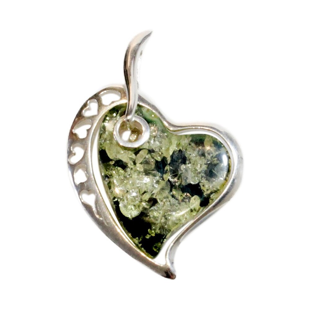 Beautiful silver 925/1000 pendant and amber green heart-shaped. This pendant is undeniably a success and will be perfect around your neck.