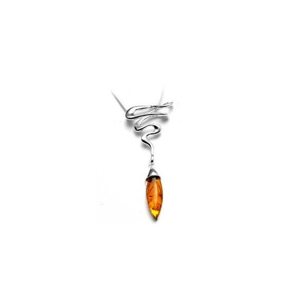 Silver 925/1000 necklace in snake shape and natural honey amber stone. An original design that will not go unnoticed.