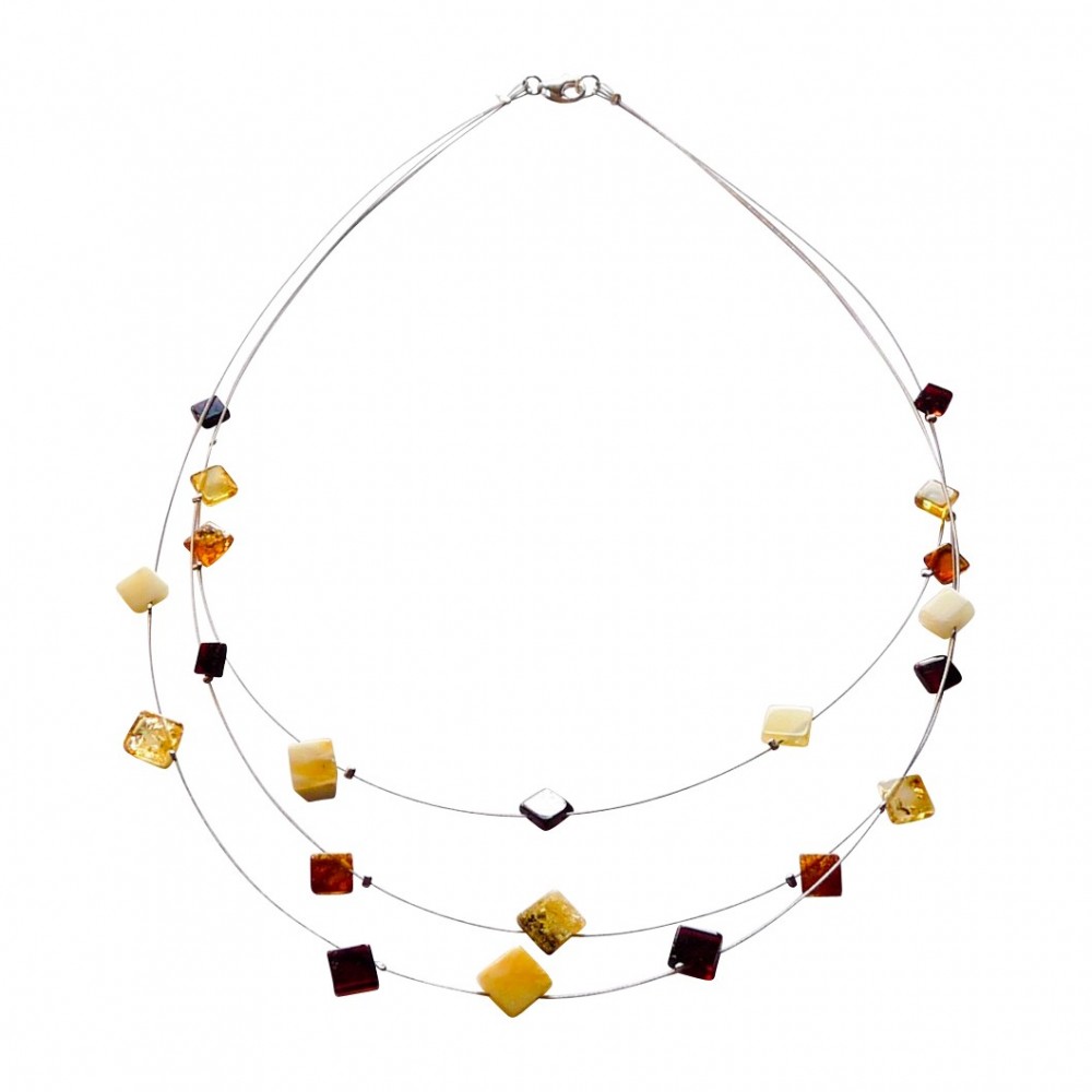 Multicolored natural amber necklace in square shape, adult size.