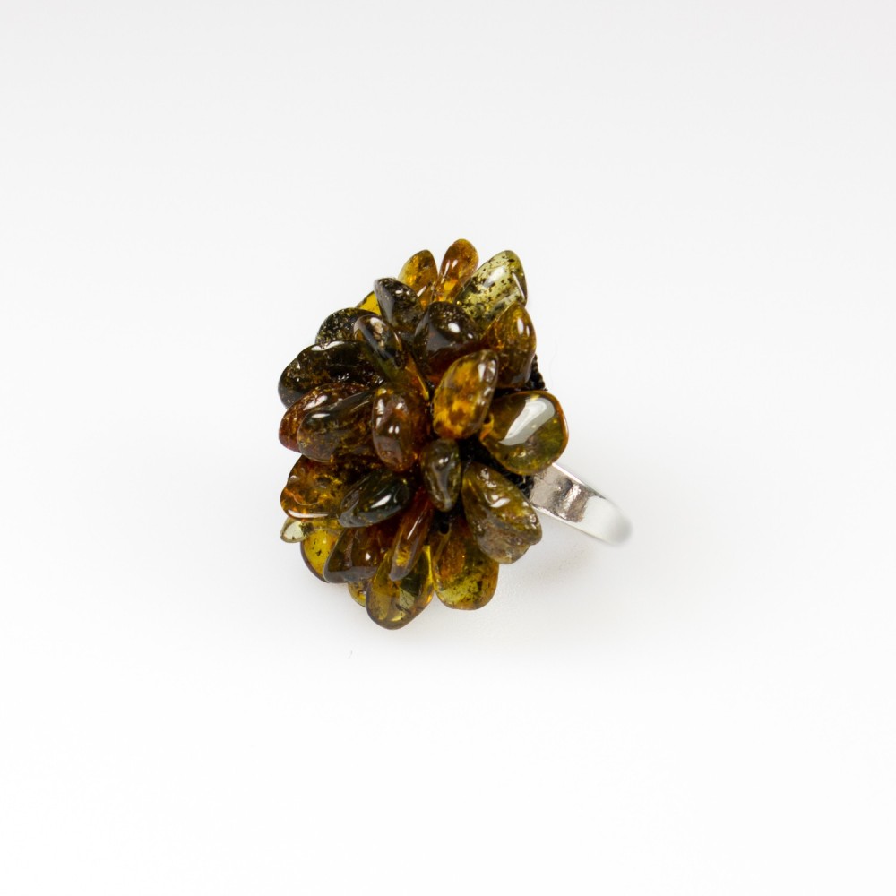 Ring in natural amber color green / honey in the shape of a flower. Adjustable size.