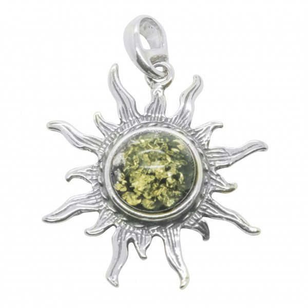 Pendant in the shape of Sun and Silver 925/1000 surmounted by a green amber stone.