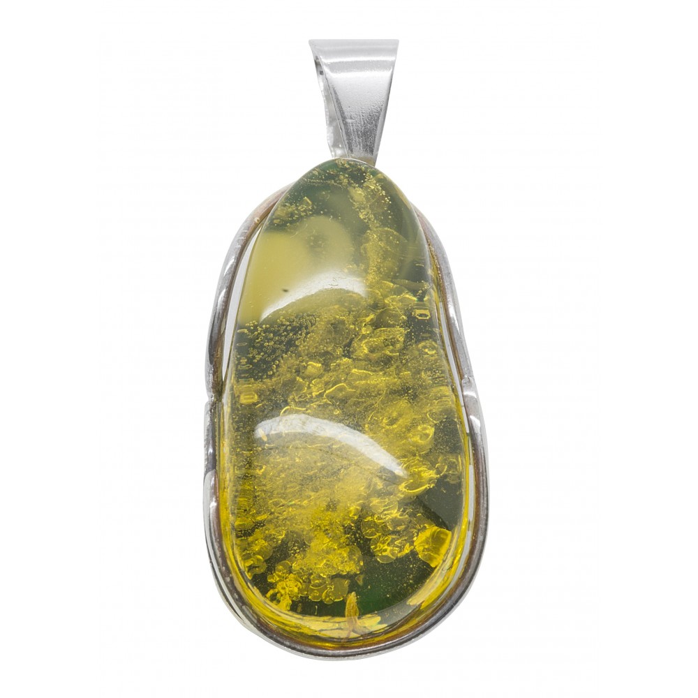 Large natural green amber pendant cut with a silver hook. Piece unique.