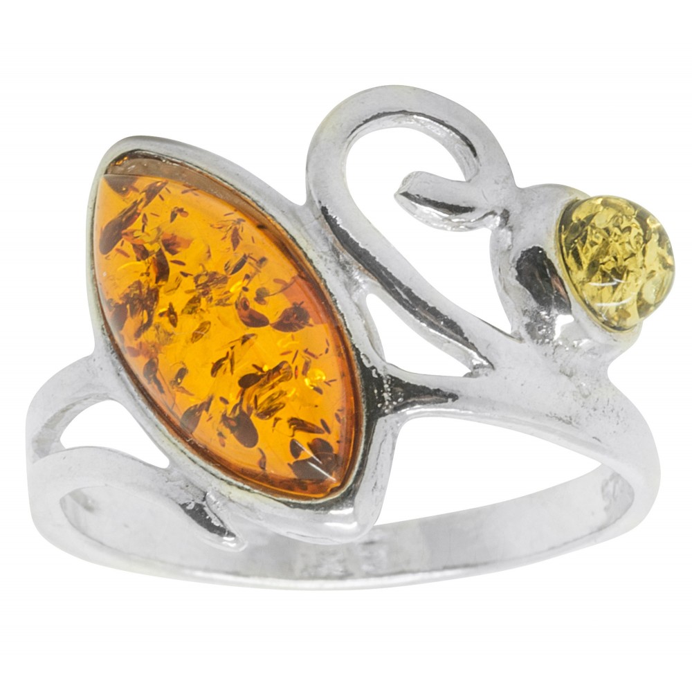 Natural amber ring, cognac and green color, all accompanied by Silver 925/1000./ P>