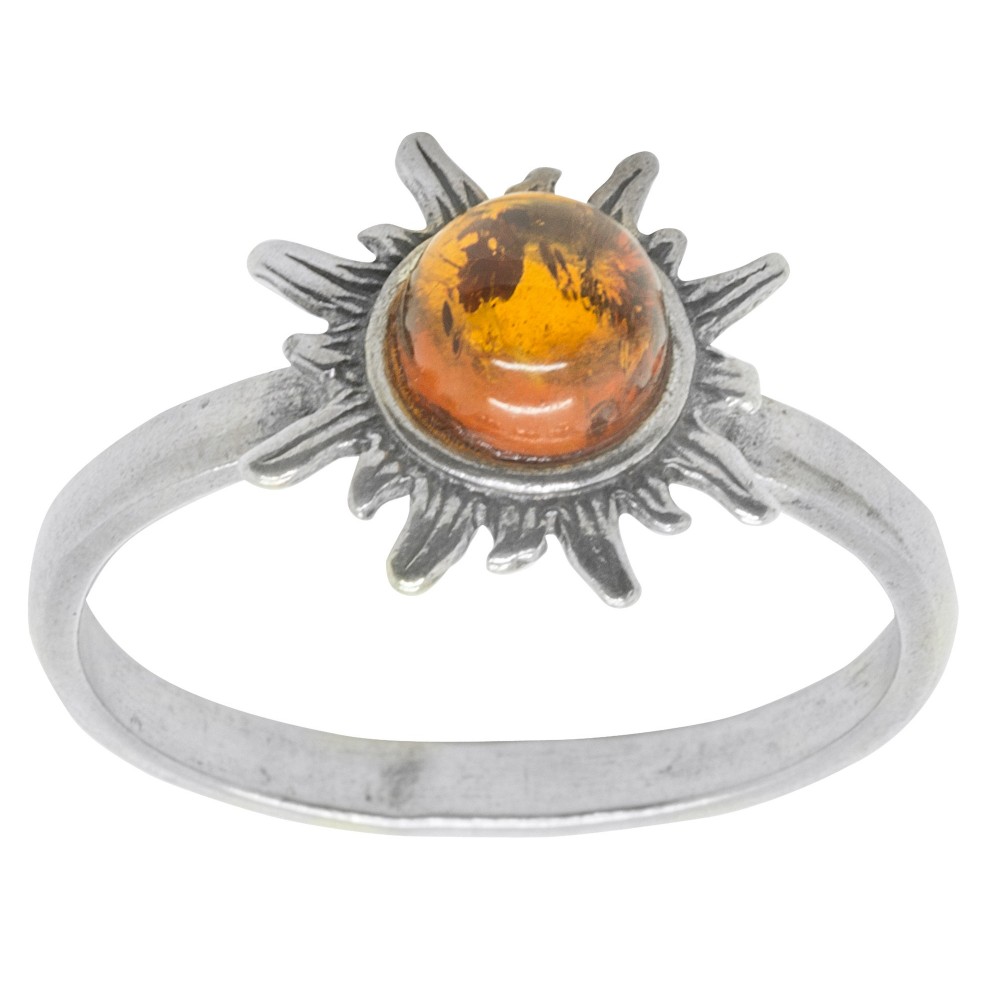 Sun-shaped ring made of a natural amber stone in the center and silver 925/1000.