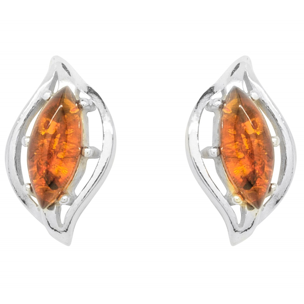 Earring Silver 925/1000 and amber natural honey color shaped eyes.