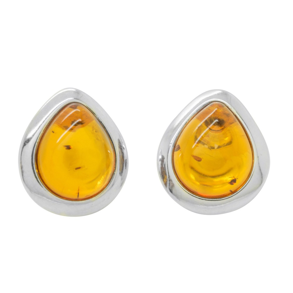 Beautiful silver earring with a natural amber stone in the shape of a cognac water drop.